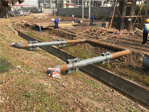 2017-11月上海金山化工區(qū)污水管道補(bǔ)償器安裝現(xiàn)場(chǎng): 現(xiàn)場(chǎng)工人忙碌的身影 初步補(bǔ)償器管道正在連接中 現(xiàn)場(chǎng)工人們正安裝屬于中等不銹鋼波紋管補(bǔ)償管道 上海漢麥金屬軟管制造有限公司